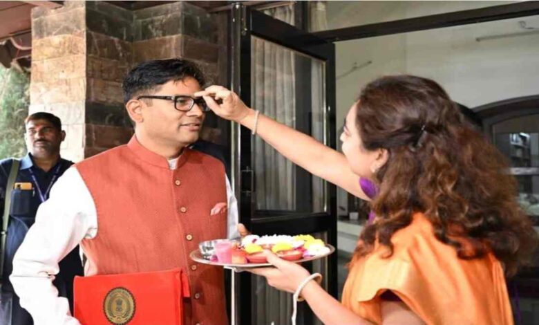 रायपुर। छत्तीसगढ़ के वित्त मंत्री ओपी चौधरी ने बजट पेश करने विधानसभा जाने के पहले छत्तीसगढ़ की मिट्टी से तिलक लगाया और छत्तीसगढ़ महतारी का आशीर्वाद लेकर विधानसभा पहुंचे। देश में ये पहला वाक्या था, जब किसी वित्त मंत्री ने अपने प्रदेश की मिट्टी का तिलक लगाकर बजट पेश किया हो। इससे पहले वित्त मंत्री ओपी चौधरी ने अपने बंगले में स्थित मंदिर में पूजा-अर्चना की। इस दौरान उनकी पत्नी अदिति चौधरी भी मौजूद रहीं। खास बात यह है कि वित्त मंत्री अपनी पत्नी का पसंदीदा जैकेट पहनकर बजट पेश कर रहे ।