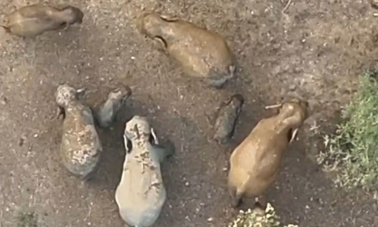 रायगढ़। छत्तीसगढ़ के रायगढ़ जिले के जंगल से हाथियों के दल का एक शानदार तस्वीर आई है. 11 हाथियों के दल बीच दो नन्हें शावक सुरक्षित घेरे में विचरण करते नजर आ रहे हैं, मामला धरमजयगढ़ वन मंडल के छाल रेंज का है. रायगढ़ जिले के जंगल से हाथियों के दल का ड्रोन कैमरे का एक शानदार तस्वीर सामने आई है. 11 हाथियों के दल में दो नन्हे शावक हैं जो अपनी मां के साथ जंगलों में घूमते नजर आ रहे हैं. हाथियों का यह दल छाल रेंज के कुडेकेला परिसर के गूडाघाट डेम किनारे विचरण कर रहा था. वीडियो में देखा जा सकता है कि मादा हाथी अपने शावक को सुरक्षित घेरे में रखते हुए जंगल में आगे बढ़ते नजर आ रही है. बताया जा रहा है कि दोनों हाथी शावक की उम्र करीब 6 महीने के आसपास है. वन विभाग एवं हाथी मित्र दल की टीम ने कुडेकेला, बांसाझार के अलावा आस-पास गांव के ग्रामीणों को सावधानी बरतने के साथ-साथ किसी भी काम के सिलसिले जंगल तरफ नही जाने की अपील की है. बताया जा रहा है कि हाथियों का यह दल अब घरघोड़ा रेंज में चला गया है. दल में शावक होने की स्थिति पर इस दल पर विशेष रूप से निगरानी की जा रही है.