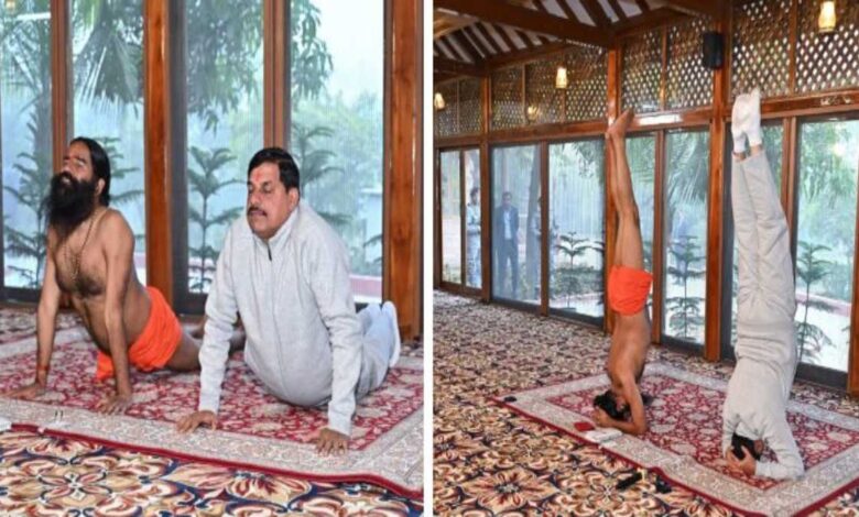 मुख्यमंत्री डॉ मोहन और बाबा रामदेव का शीर्षासन: योगपीठ हरिद्वार में रामदेव के साथ किया योग अभ्यास