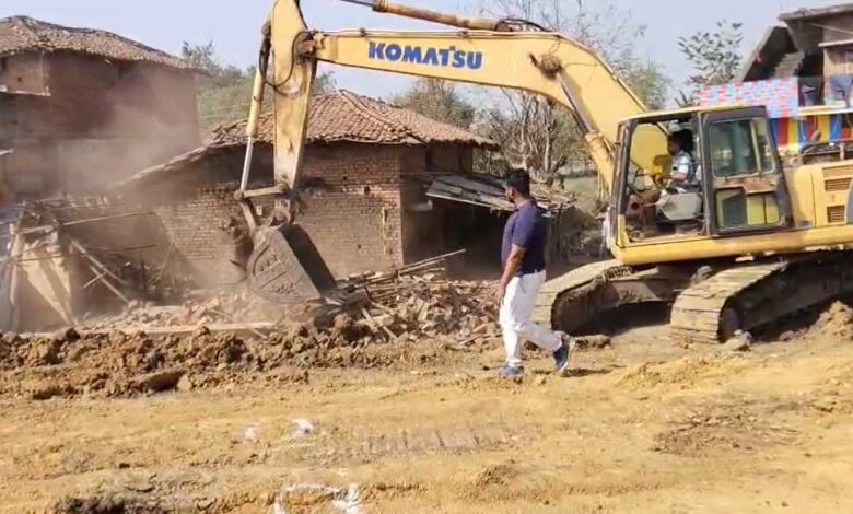 रेलवे लाइन निर्माण की प्रक्रिया में तेजी : मुआवजा मिलने के बाद भी नहीं हटाया अवैध कब्जा, प्रशासन ने चलाया बुलडोजर
