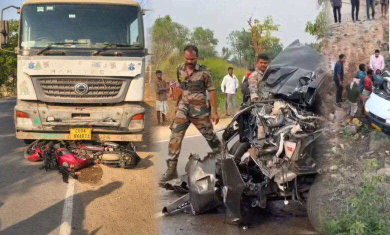 सड़क हादसे में शिक्षक की मौत… NH-63 पर इनोवा-ट्रक में हुई भिड़ंत… खेत में पलटी एम्बुलेंस