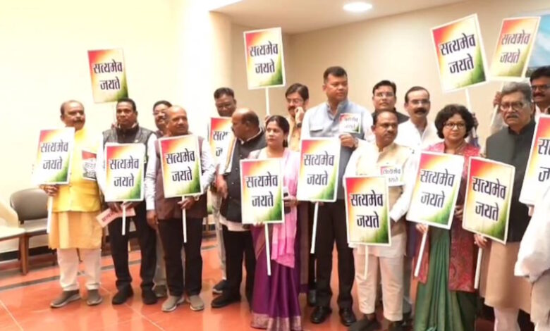 सत्यमेव जयते’ का पोस्टर लेकर सदन में पहुंचे कांग्रेस विधायक