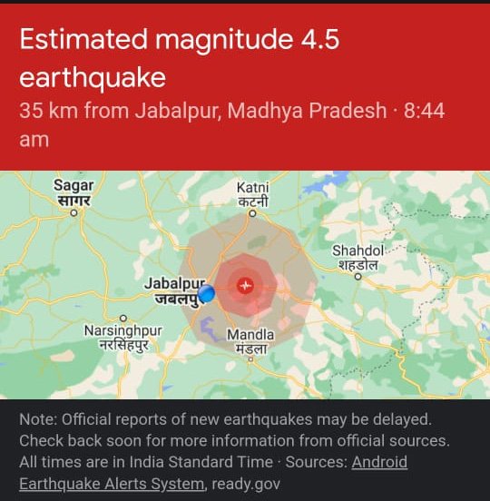 जानकारी के अनुसार भूकंप का केंद्र जबलपुर से 35 किलोमीटर दूर था.