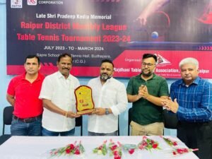 श्री अग्रवाल का रायपुर टेबल टेनिस एसोसिएशन के अध्यक्ष एवं सदस्यों के द्वारा पुष्प गुच्छ एवं स्मृति चिन्ह प्रदान कर स्वागत किया गया.
