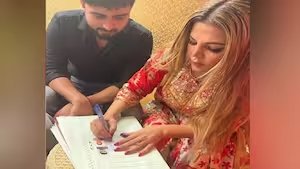 उनकी शादी की कुछ फोटोज सोशल मीडिया पर वायरल हो रही है. सामने आई फोटोज में देखा जा सकता है कि दोनों गले में वरमाला डाले मैरिज सर्टिफिकेट दिखाते नजर आ रहे हैं. इतना ही नहीं एक फोटो और सामने आई है, जिसमें देखा जा सकता है कि राखी और आदिल मैरिज कोर्ट में सर्टिफिकेट पर साइन करते नजर आ रहे हैं. इस फोटो से साफ जाहिर हो रहा है कपल ने कोर्ट मैरिज की है.