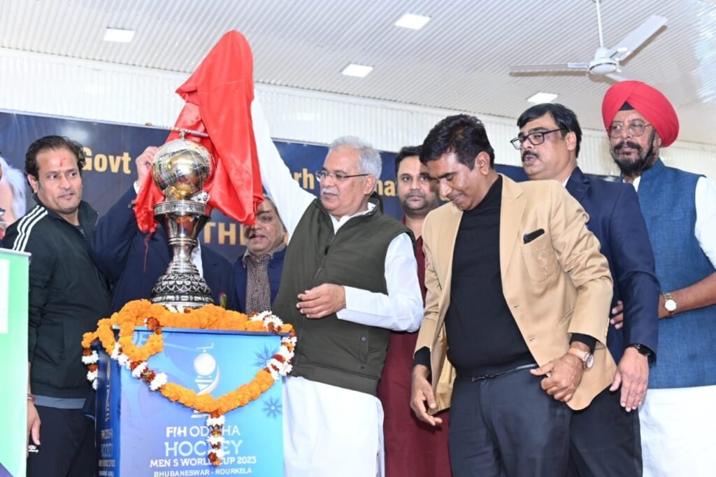 मुख्यमंत्री भूपेश बघेल ने चक दे इंडिया के नारे के साथ हाकी विश्व कप की ट्राफी उठाई और भारत को विश्व विजेता बनने के लिए शुभकामनाएं दीं है . हॉकी वर्ल्ड ट्रॉफी आज छत्तीसगढ़ पहुंची है . राजधानी रायपुर में मुख्यमंत्री भूपेश बघेल ने ट्रॉफी का अनावरण किया. हॉकी वर्ल्ड कप की ट्रॉफी को हॉकी इंडिया नई दिल्ली द्वारा देश के विभिन्न 16 राज्यों में भ्रमण कराया जा रहा हैं. अंतिम पड़ाव में यह छत्तीसगढ़ की राजधानी रायपुर पहुंची है. गौरतलब है कि ओडिशा में 13 से 29 जनवरी 2023 तक एफआईएच ओडिशा मेन्स वर्ल्ड कप आयोजित किया जा रहा है. यह प्रतियोगिता भुवनेश्वर और राउरकेला में संपन्न होगी.